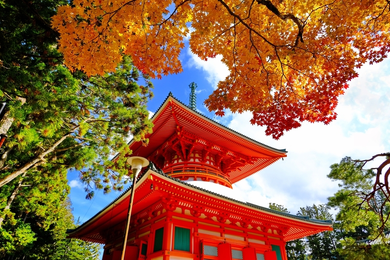 世界遺産としても有名な高野山。紅葉に包まれる道を走ると、特別な秋を感じられます。